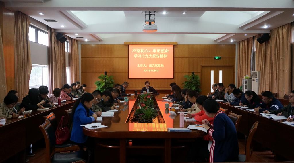 十九大閉幕后,學校及時召開黨委會,傳達省委貫徹十九大精神會議的精神,對全校學習貫徹十九大精神作了研究部署;召開黨委理論學習中心組專題擴大會議,進一步學習報告、部署學習宣傳貫徹黨的十九大精神工作。學校黨政班子成員帶頭學習、暢談學習體會。校黨委書記周國模撰寫《堅持立德樹人踐行“兩山”使命 為決勝全面建成小康社會提供人才科技支撐》的學習體會文章,并在《浙江教育報》頭版發表。他表示,學校將旗幟鮮明地把習近平新時代中國特色社會主義思想作為行動指南,全面落實立德樹人的根本任務,發揮人才科技優勢服務生態建設和精準扶貧,以實際行動為決勝全面建成小康社會貢獻力量。