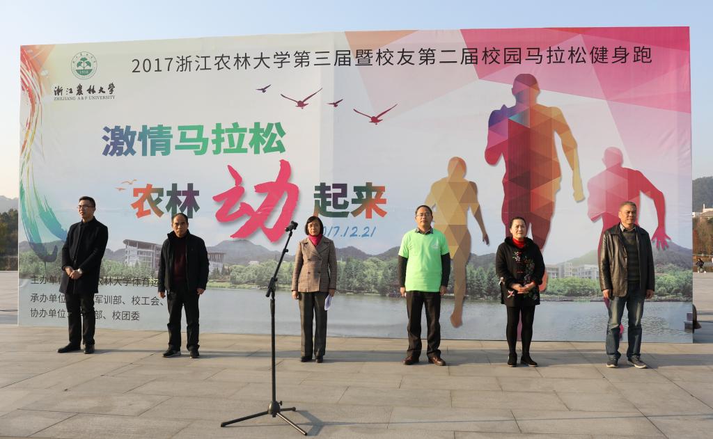 為積極倡導(dǎo)健康生活方式,鼓勵(lì)全校廣大師生積極參與長(zhǎng)跑運(yùn)動(dòng),誠(chéng)邀廣大校友“回家”看看,讓健康和運(yùn)動(dòng)的思想深入人心,12月21日,浙江農(nóng)林大學(xué)第三屆暨校友第二屆屆迷你馬拉松健身跑活動(dòng)開(kāi)幕。副校長(zhǎng)、校體育運(yùn)動(dòng)委員會(huì)主任沈月琴,校黨委委員、宣傳部部長(zhǎng)、校健步走協(xié)會(huì)會(huì)長(zhǎng)胡祖吉,校工會(huì)、校友辦、團(tuán)委、體軍部負(fù)責(zé)人出席開(kāi)幕式。