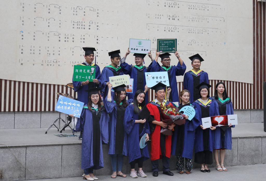 學位授予儀式上,應義斌為每一位畢業研究生頒發證書、撥穗正冠,合影留念,學院院長和研究生導師共同見證這一莊嚴時刻。