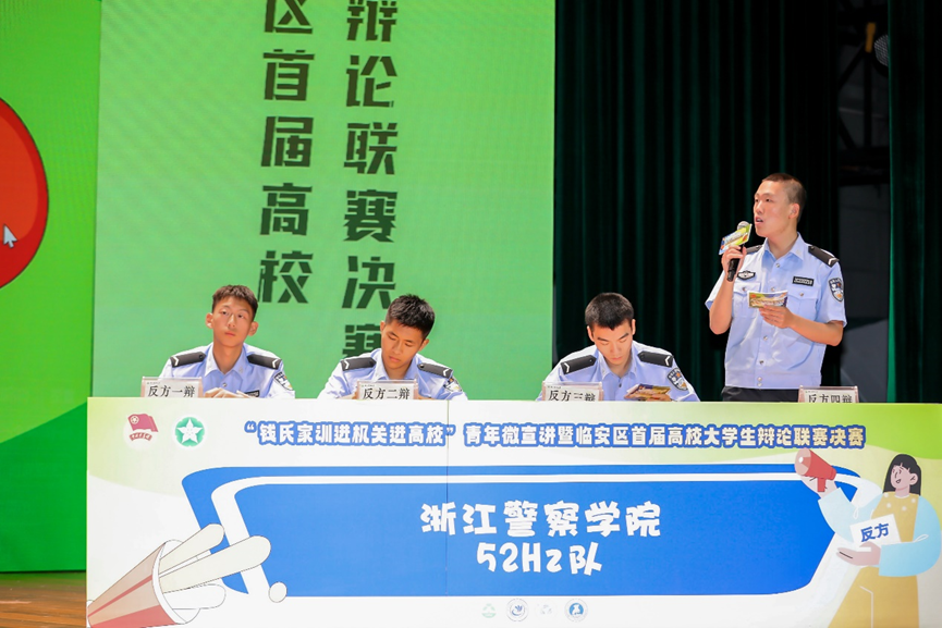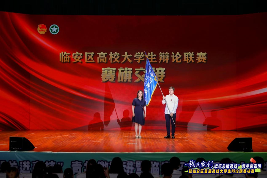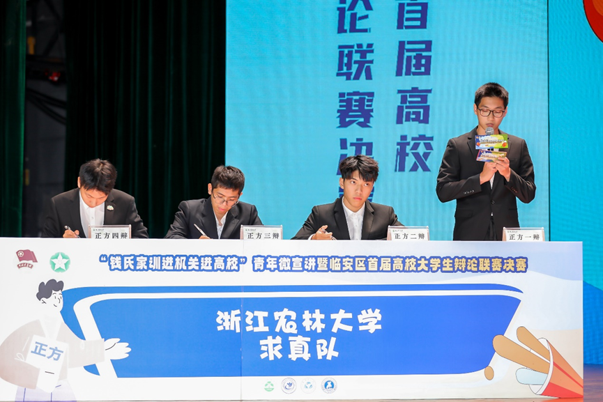 6月26日晚,“錢(qián)氏家訓(xùn)進(jìn)機(jī)關(guān)進(jìn)高校”青年微宣講暨臨安區(qū)首屆高校大學(xué)生辯論聯(lián)賽決賽在我校東湖校區(qū)舉辦。臨安區(qū)委宣傳部部務(wù)會(huì)議成員、社科聯(lián)主席沈向榮,臨安團(tuán)區(qū)委書(shū)記季煜程,浙江農(nóng)林大學(xué)團(tuán)委書(shū)記魏玲玲,臨安區(qū)委組織部副部長(zhǎng)羅莉娜,杭州醫(yī)學(xué)院團(tuán)委副書(shū)記黃河儒,杭州電子科技大學(xué)信息工程學(xué)院團(tuán)委副書(shū)記俞霖楠,第一屆杭州辯論邀請(qǐng)賽季軍李振龍出席活動(dòng)。