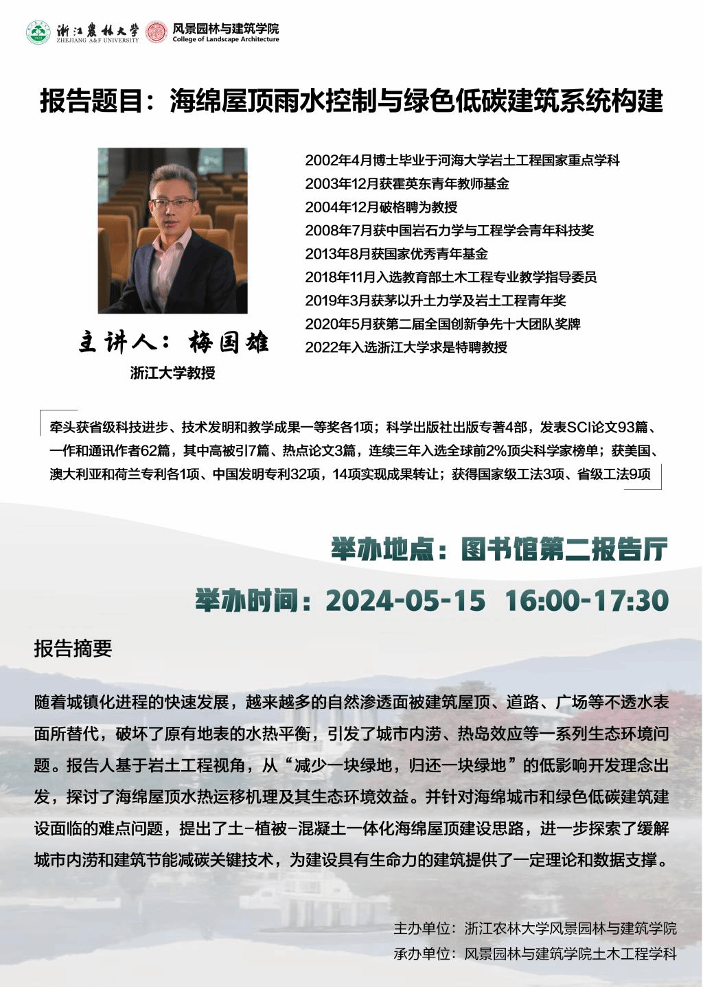 【發(fā)布日期: 2024-05-14】 【來源:風景園林與建筑學院 】 【作者:風景園林與建筑學院】 【編輯:郝璞玉】 【點擊量: