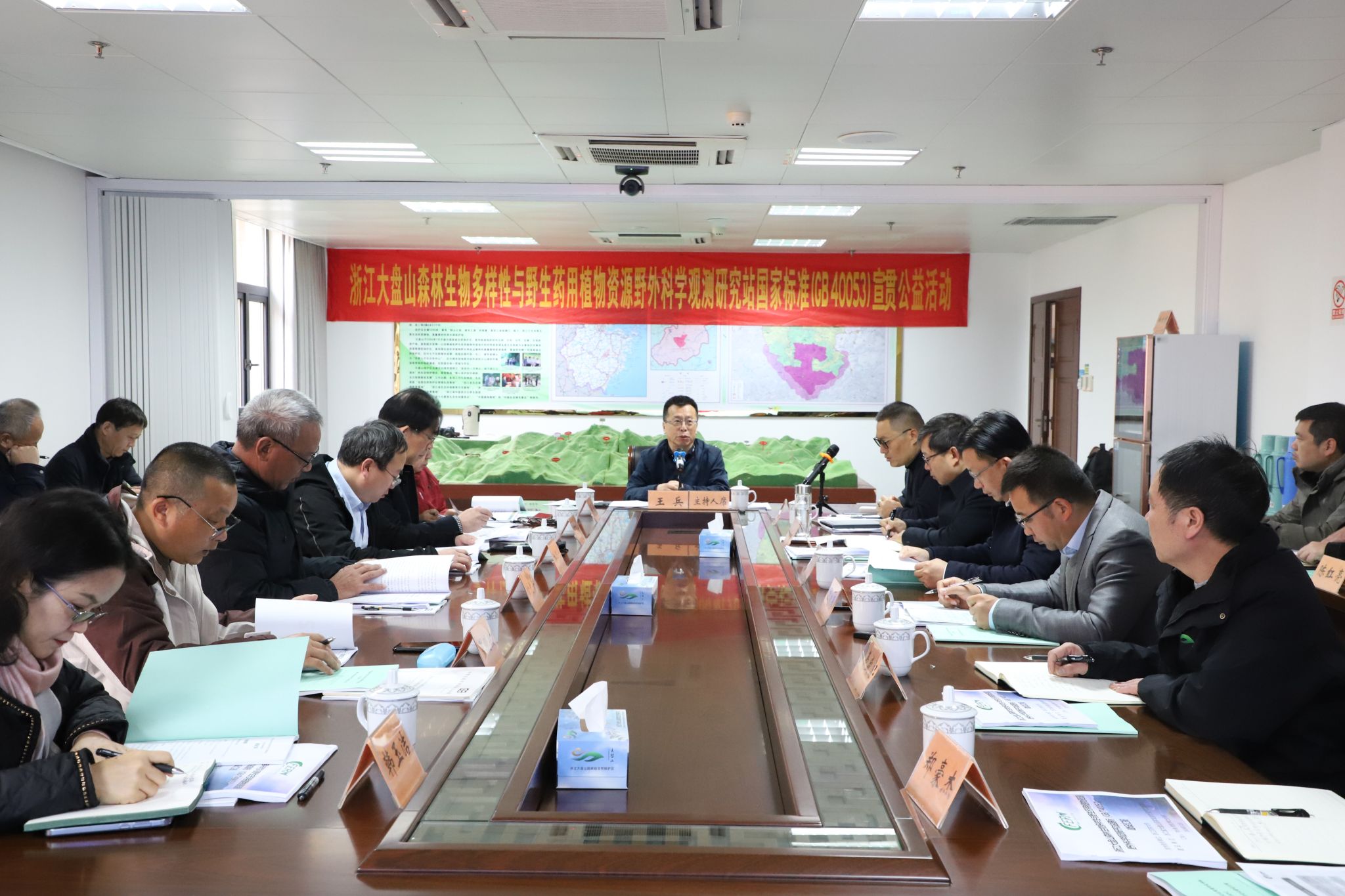 室內國標宣貫由王兵主持并致辭。王兵表示,大盤山作為我國唯一以野生藥用生物種質資源為主要保護對象的國家級自然保護區,大盤山野外站是CFERN第一個以野生藥用生物種質資源為主要觀測研究對象的野外站,是傳統經典生態學研究建站需求轉化為服務產業、經濟等社會價值體現建站需求的有效探索。