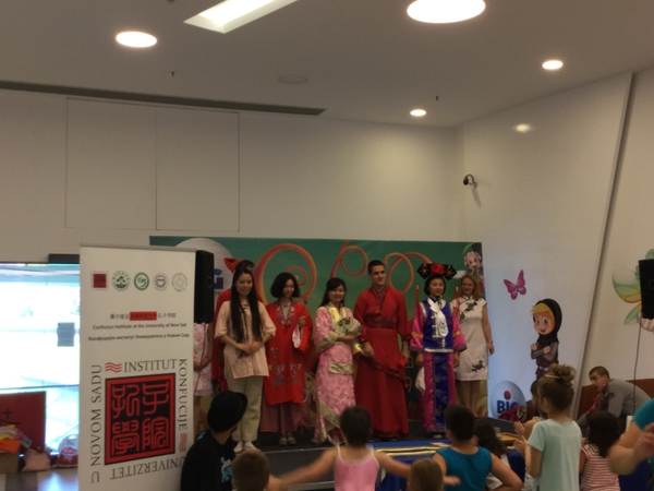 當地時間7月2日下午,根據塞爾維亞最大兒童夏令營Novosadsko Decije Leto的安排,諾維薩德大學孔子學院在當地最大購物商城Big Center,用不同的方式呈現豐富多彩的中國文化,帶領200多名小朋友和當地市民快樂“穿越”源遠流長的中國文化。